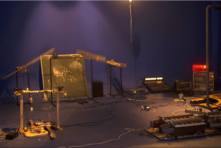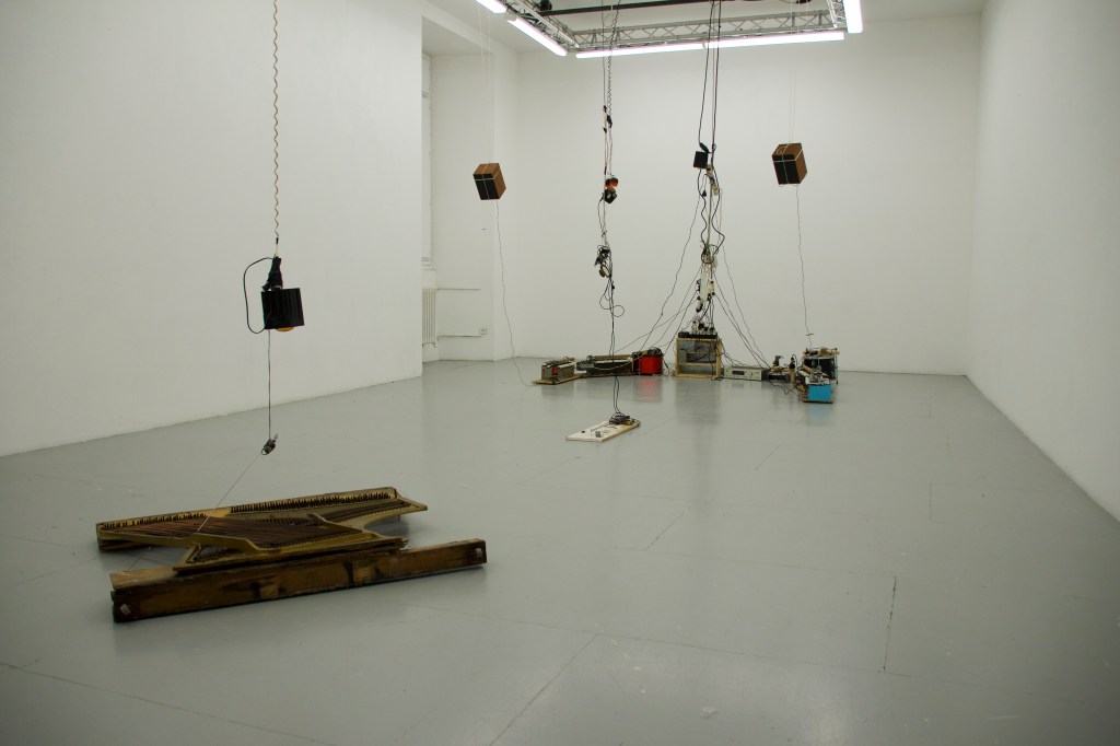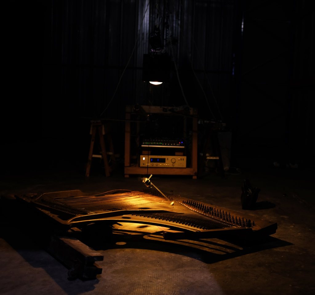 composée de la restitution de prises de sons par micros piezo sur ses rampes.